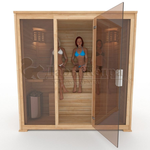 Это специально оборудованная готовая деревянная кабина для сухого и влажного парения. Электропечь нагревает пространство внутри и позволяет сбрызгивать камни водой, слегка увлажняя воздух. Такая процедура позволяет избежать перегрева. Сауна обшита снаружи и внутри кедровой вагонкой и имеет теплоизоляционный слой. Финская сауна с электропечью подойдет, как для домашнего использования, так и для коммерции. Доставляется в разборном виде щитами, собирается по инструкции с помощью шуруповёрта.
