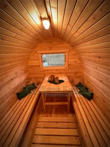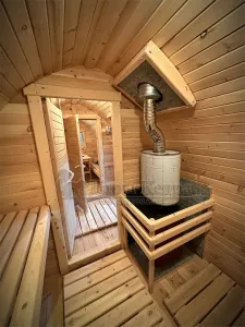 Мобильная баня-бочка с каждым днем набирает все большую популярность благодаря её возможной транспортировки куда угодно: на отдых в лесу, на рыбалку или на побережье реки