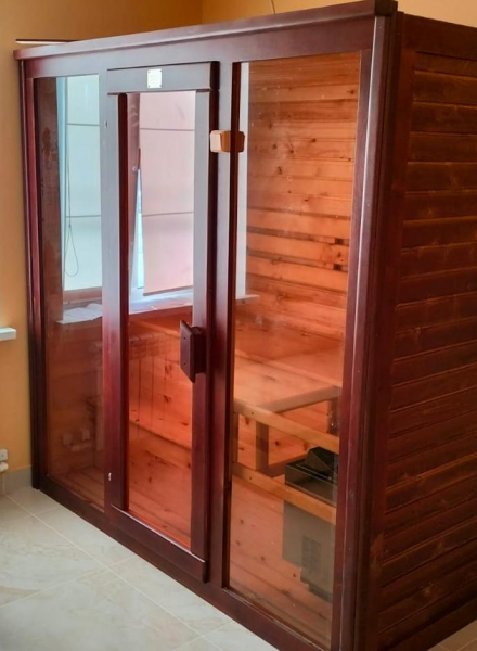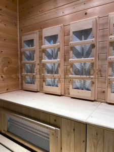 Это специально оборудованная кедровая кабина для прогрева тела человека сухим теплом. Воздух в таких парных не нагревается. Инфракрасные лучи воздействуют на тело, равномерно прогревая мышцы, суставы и органы. Керамические излучатели похожи на лампы, имеют высокую температуру нагрева, поэтому защищены противоожоговыми решетками. Тело человека в таких саунах нагревается интенсивнее. Работает кабина за счет электричества. Инфракрасная сауна с керамическими излучателями подойдет как для домашнего использования, так и для коммерции.