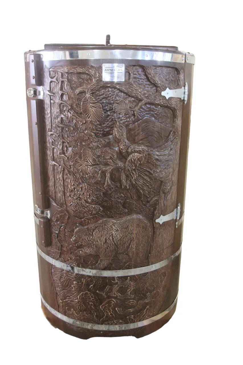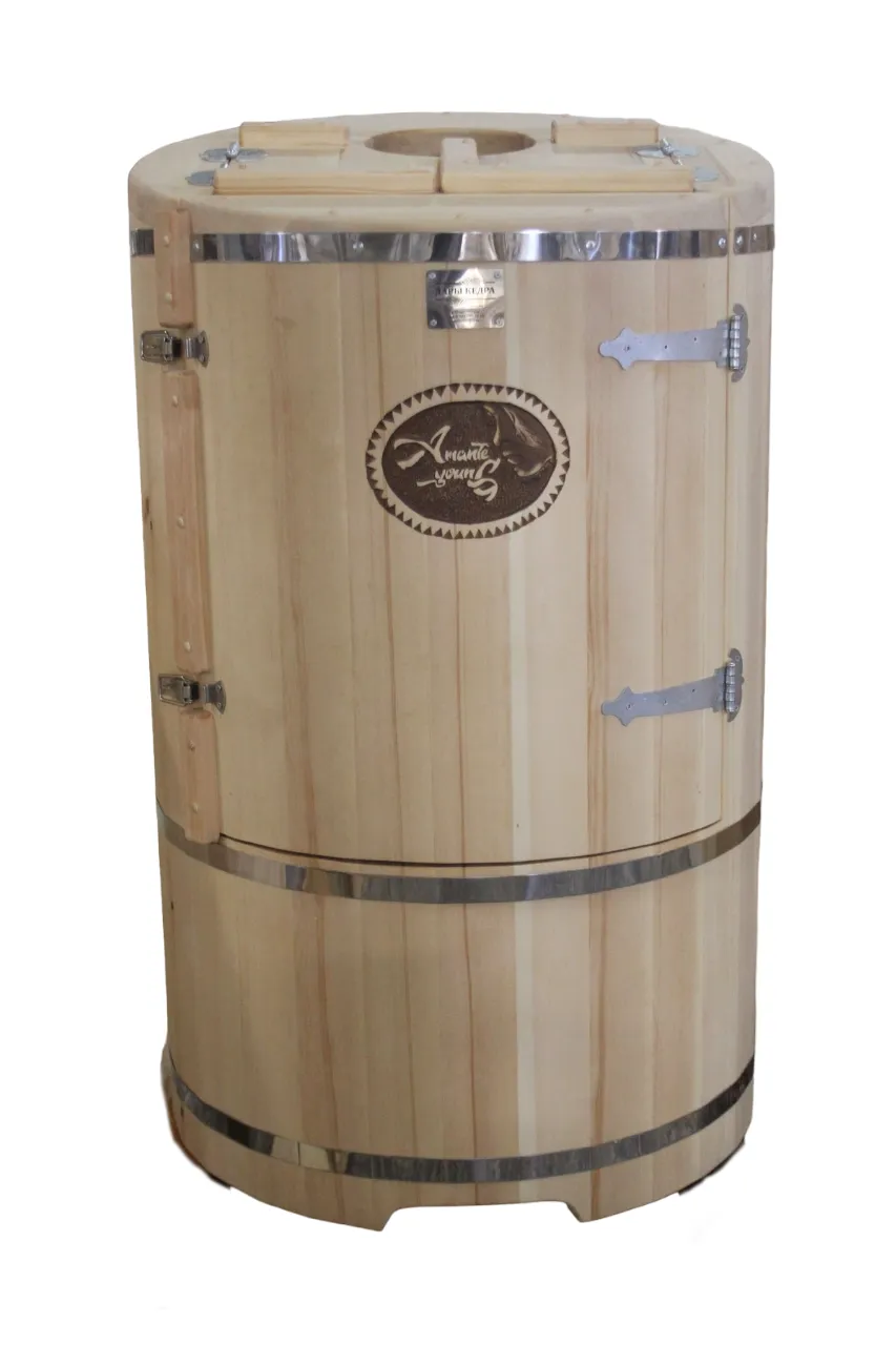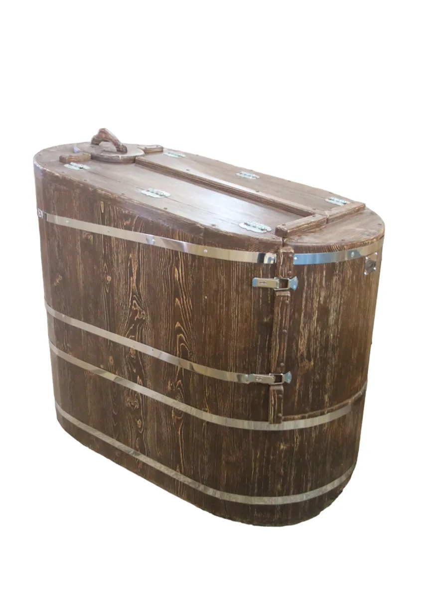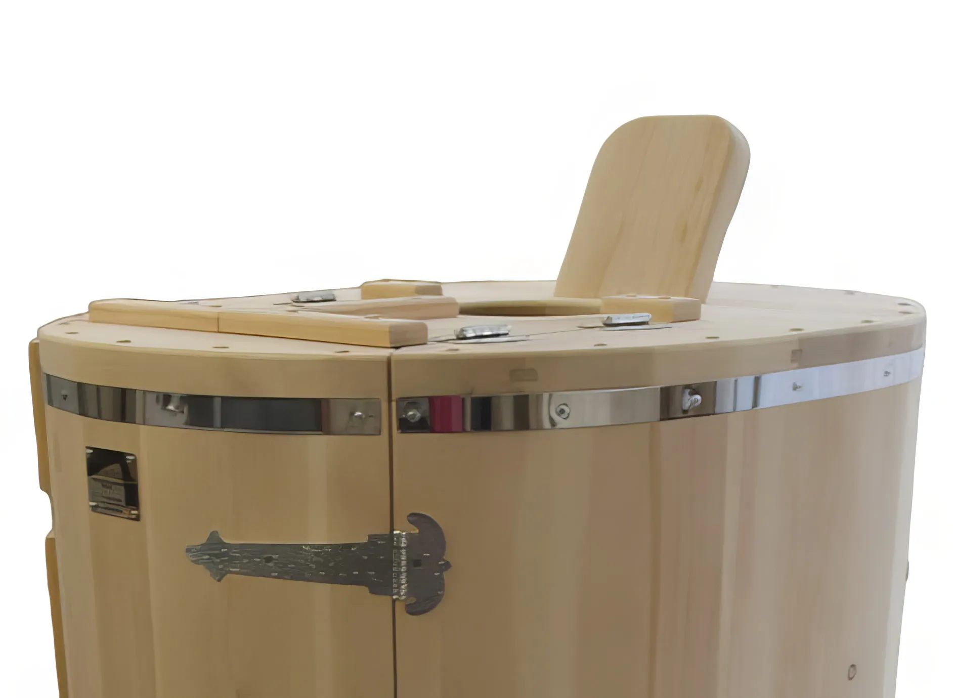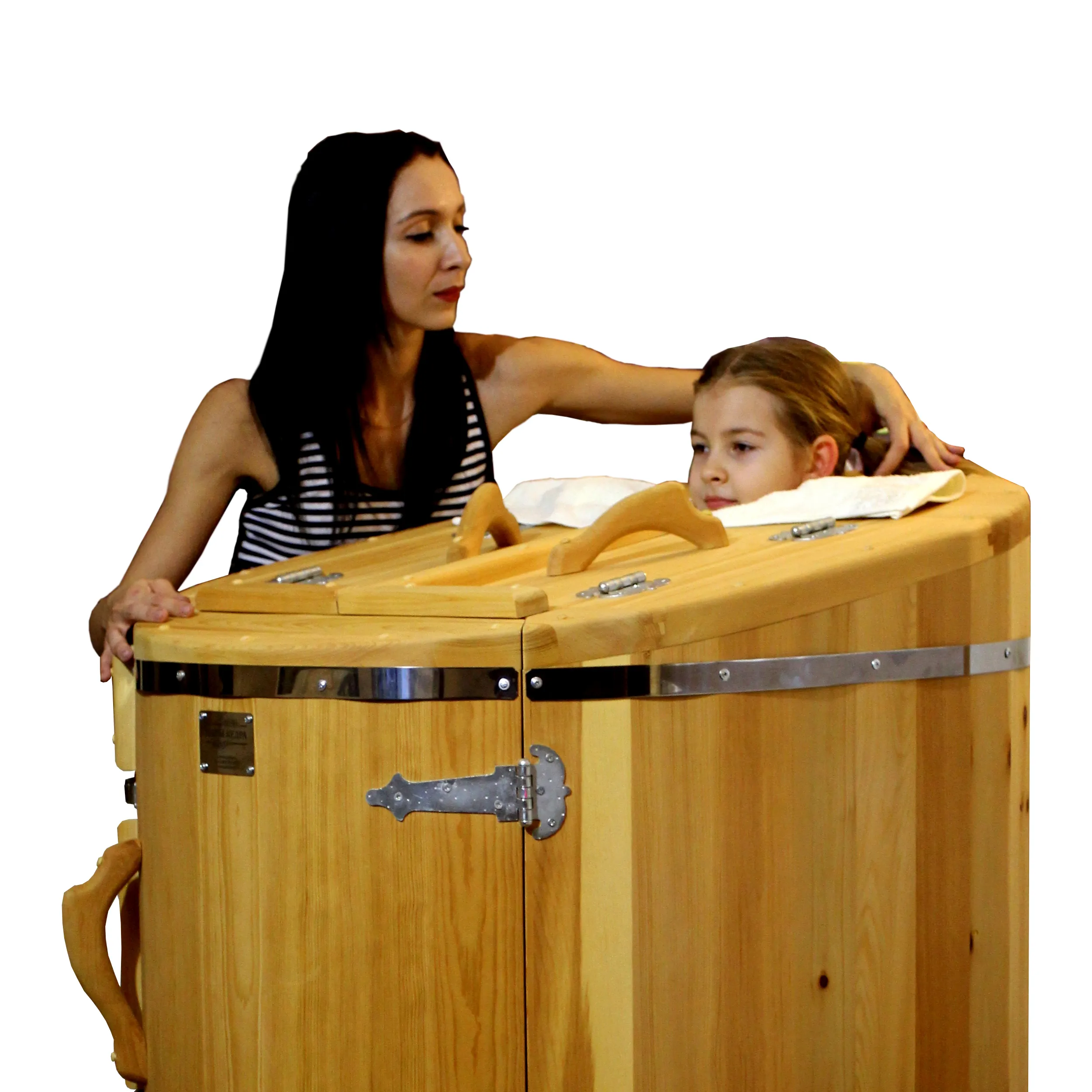 Кедровая фитобочка полулежачая - это мини парная, которую можно использовать не только в спа-салонах, но и дома. Модель этой бочки наиболее комфортна, так как позволяет принимать процедуры полулежа. Толщина стенок составляет 25 мм. Фитобочка оборудована откидными створками, дверцей и отверстием для головы. Во время парения человек находится внутри кедровой бочки, а голова снаружи. Благодаря этому исключается возможность перегрева. Подлокотники, подспинник из кедра и внутренние ручки делают эксплуатацию фитобочки более удобной.