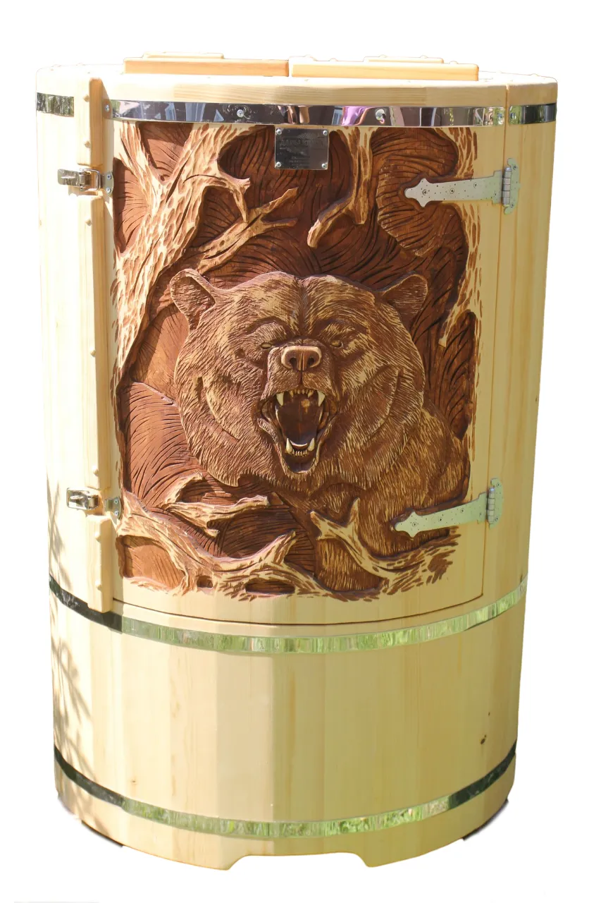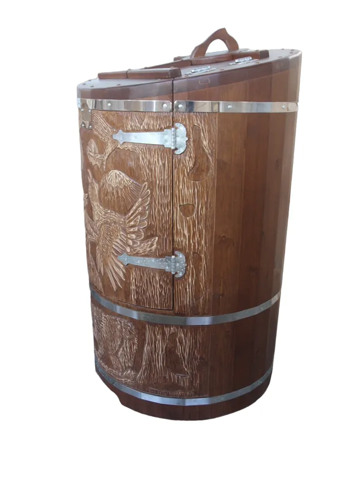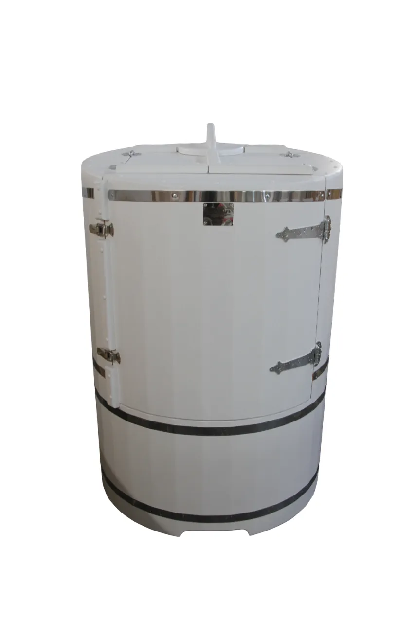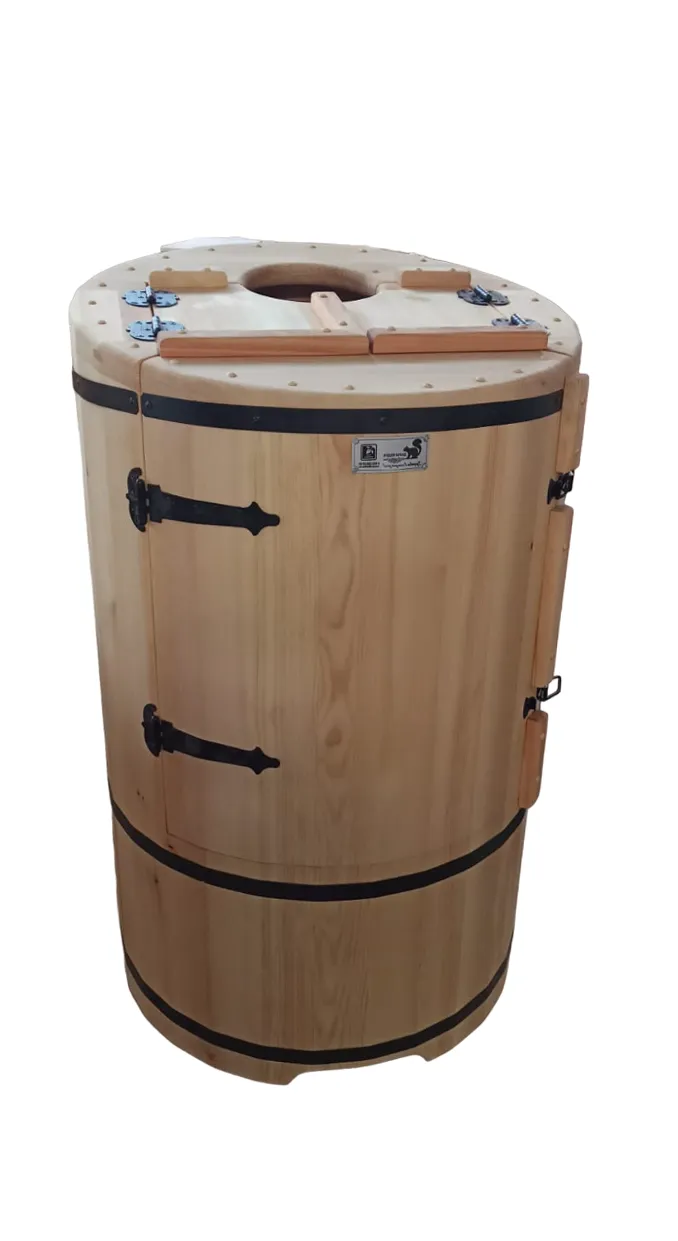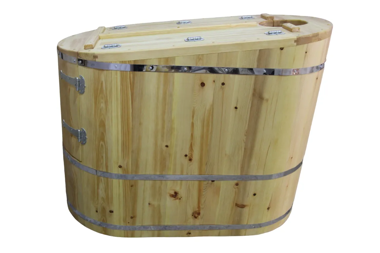 Кедровая фитобочка полулежачая - это мини парная, которую можно использовать не только в спа-салонах, но и дома. Модель этой бочки наиболее комфортна, так как позволяет принимать процедуры полулежа. Толщина стенок составляет 25 мм. Фитобочка оборудована откидными створками, дверцей и отверстием для головы. Во время парения человек находится внутри кедровой бочки, а голова снаружи. Благодаря этому исключается возможность перегрева. Подлокотники, подспинник из кедра и внутренние ручки делают эксплуатацию фитобочки более удобной.