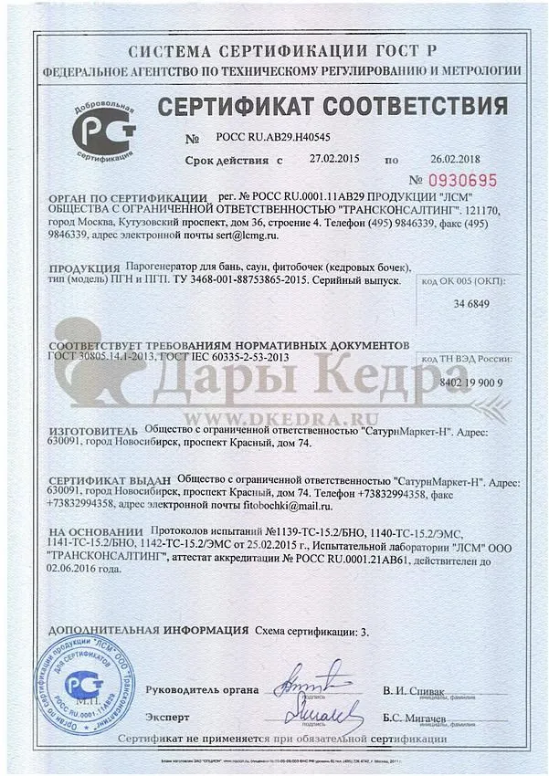 Сертификация: