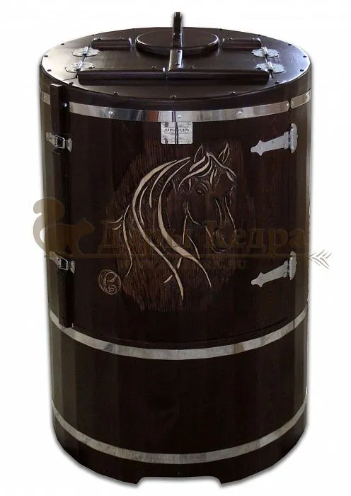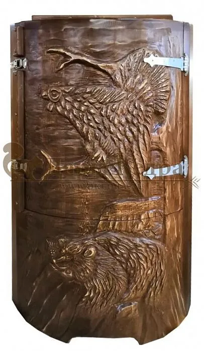 И, конечно, стоит отметить мастеров компании, осуществляющих профессиональную резьбу на древесине фитобочки или купели. Изделие с художественным оформлением - это выбор ценителей красоты, индивидуальности, эко-стиля. Бочка с резьбой станет объектом всеобщего внимания. Можно выполнить тонирование рисунка или окрашивание всей бочки в круговую и выделение рисунка сделать отдельно с помощью осветления. Таким образом, более светлый контур резьбы будет смотреться очень ярко на темной фитобочке. Все работы по художественному оформлению проводятся мастерами вручную, никаких станков!