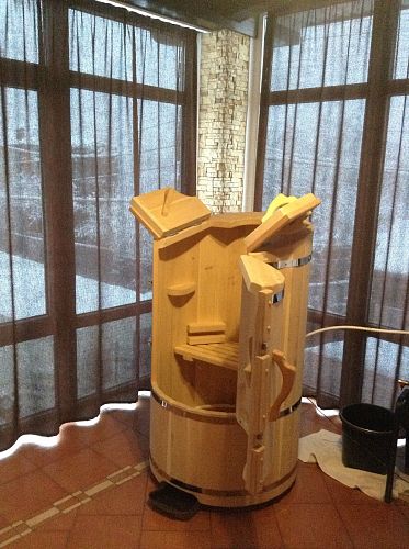 Покупали такой комплект для дачи, установили в комнате отдыха в бане. Удобно очень, когда народу много в семье и все хотят попариться. Дети, кстати, предпочитают больше греться в бочке, чем в парной бани.